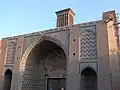 Vakil caravanserai consists of two floors and has 120 rooms. The number of rooms is on the first floor to 81 and on the second floor to 31.Caravanserai has two doors opening to Vakil market(Bazar-i Vakil).[3] The entrance facade to Vakil caravanserai, which opens into the market is decorated with tiles. This is the same from outside porch. One of the most valuable features of this caravanserai is its windshield Which has its own reputation and beauty. Another historical attraction is the clock tower which has a long history how it got to Iran.[4]