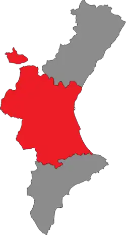 The constituency was created as per the Statute of Autonomy of the Valencian Community of 1982 and was first contested in the 1983 regional election. The Statute provided for the three provinces in the Valencian Community—Alicante, Castellón and Valencia—to be established as multi-member districts in the Corts Valencianes, with this regulation being maintained under the 1987 regional electoral law. Each constituency is entitled to an initial minimum of 20 seats, with the remaining 39—29 until 2007—being distributed in proportion to their populations (provided that the seat-to-population ratio in any given province did not exceed three times that of any other). The exception was the 1983 election, when each constituency was allocated a fixed number of seats: 29 for Alicante, 25 for Castellón and 35 for Valencia.[2][3]