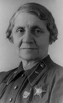 Valentina Valentinovna Gorinevskaya was born in 1882 and graduated from the St Petersburg Medical Institute for Women in 1908. She worked in the surgical clinic of Peter and Paul Hospital from 1908 to 1914. When World War I began in 1914, Gorinevskaya became the first woman to become a senior surgeon in a military hospital of the Imperial Russian Army (Russian: Ру́сская импера́торская а́рмия). "There was little fighting on the Allied eastern front in 1917,[1] but nevertheless, hundreds of casualties had accumulated by this time in military hospitals".[2] After the war, she became a professor of general surgery at Samara University in 1919 before moving to Moscow, where she was the head of the surgical department at the Obukh Institute. Then she became a surgeon at the Traumatological Department of the Institute of Therapy and Prosthetics professor of surgery at the Central Institute of Postgraduate Medical Training. Gorinevskaya joined the Workers' and Peasants' Red Army (Russian: Рабоче-крестьянская Красная армия (РККА) and served as the chair of field surgery in 1931–1939 and chief surgeon during the Khalkhin Gol Campaign of 1939. She served as a senior inspector of the Main Military Medical Board during World War II and died in 1953.[3]