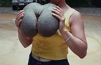His observation was contested by another writer H. Watley Estridge who pointed out to Gordon that the 10 centimetres (3.9 in) thick husk of the fruit was impossible to have been bitten through by Eve, to which Gordon had no plausible answer. The endemic black parrot almost exclusively nests in the dead standing trunks of this palm.[9][4]