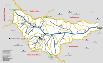The municipalities of the valley are Aisone, Argentera, Borgo San Dalmazzo, Demonte, Gaiola, Moiola, Pietraporzio, Rittana, Roccasparvera, Sambuco, Valloriate and Vinadio.[2]