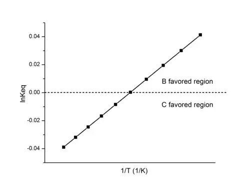When B/C < 1, C is the favored product, and the data on the Van 't Hoff plot will be in the negative region.