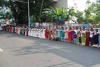 - ^ "Kerala wall: 50 lakh women form 620-km Vanitha Mathil, take pledge to uphold gender equality". India Today. 1 January 2019. Archived from the original on 3 January 2019. Retrieved 2 January 2019.
