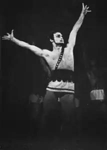 Khanamirian joined the Alexander Spendiarian[1] Academic Theater of Opera and Ballet in 1941. In 1947, Khanamirian got his first major part as Nerso in Aram Khachaturyan's Gayane, and soon after that became one of the soloists in the Yerevan Opera Theater. Aram Khachaturyan was present at one of the concert; Khachaturyan was quoted as saying "The way Khanamirian danced made me realize how cultural and Armenian my music really is." Khanamirian became known in the Ballet Academy when he played the role of "Sasuntsi Davit," which he performed so well that a very famous Armenian sculptor at the time, Yervand Kochar, asked him to be the model for the statue of "David of Sasun," one of many famous statues in Yerevan, Armenia today. Khanamirian played in as many as twenty famous ballet productions like Arshak, Sevan, Khantoot and Marmar, but he became famous for his role in Spardak Khanamirian also directed three ballet productions, two of which won national awards in Moscow.