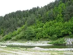 The Varbitsa (Bulgarian: Върбица [vɐrˈbit͡sɐ]) is a 98 km long river in the eastern Rhodope Mountains in southern Bulgaria. It is the longest and the largest tributary of the Arda, the main river of mountain range, itself a tributary of the Maritsa.[2][3] The Varbitsa is Bulgaria's most temperamental river, with up to 5,000 times difference in water volume between spring highs and autumn lows, with frequent massive flooding and erosion as a result.[2] Its middle and lower valley is considered the boundary between the western and the eastern Rhodopes.[3]