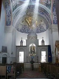 In 1917 Sureniants moved to Yalta where he was commissioned to draw the decorations for the newly built Armenian cathedral. Sureniants decorated the altar, walls, and dome of the church.[18] While decorating the church Surentiants suffered a grave illness. He died on 6 April 1921, and is buried in the premises of the Armenian church of Yalta.[19]