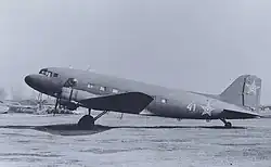 At the onset of the German attack on the Soviet Union in July 1941, Urdia was deployed to the warfront within newly formed 101st Fighter Aviation Regiment of the Air Defence Division (101-я истребительная авиационная дивизия).[10][11] In the 101st regiment Urdia was assigned to the squadron of PS-84 bomber aircraft on the Voronezh Front during the Soviet effort to repel the German advance on the city of Voronezh which was a gateway to Hitler's main objective of Stalingrad.[12] The PS-84 aircraft had flown with Aeroflot as a passenger plane but since the outbreak of the war it was primary used in military operations. The aircraft was renamed to Lisunov Li-2 in 1942 and equipped with a 12.7 mm (.50 in) UBK heavy machine gun and used for supply transportation and aerial bombing. The newly remodeled plane was able to carry smaller bombs inside its fuselage which were released from the freight hatch by the crew. However, its ability to maneuver inflight was limited and vulnerable to the anti bomber attacks by the German Messerschmitt Me 262 fighters with its roller-coaster aerial tactics. Between March and December 1942, Urdia flew PS-84/Li-2 aircraft for more than eleven nighttime bombing raids on German positions targeting artillery batteries, infantry dugouts and supply lines. His nighttime bombing raids were successful in inflicting losses on the motorized units of the Wehrmacht.[13]