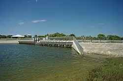 Like the Vasse floodgates, the Wonnerup floodgates were built by the Public Works Department in 1907. The site chosen was near the Forest Beach Road bridge and like the Vasse floodgates, they were refurbished in 1927, 1942, 1991 and replaced in 2004.[3] The new site was 20 m (66 ft) upstream from the original gates. Once the new gates were operational, the old gates were removed and destroyed, though the abutments were left in place, with the south abutment having a high degree of authenticity from the original structure.[1]