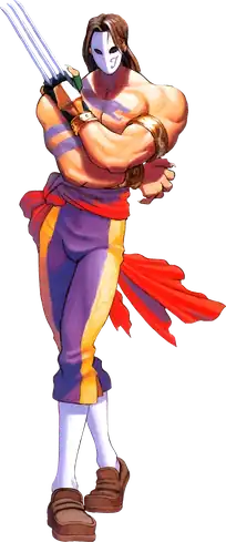 Several designs followed, his initial appearance consisting of a masked man in a ripped shirt with long, frizzy hair,[4] followed by a heavily muscled masked man dressed as a matador with shoulder pads. A masked templar with a broadsword and cross on his chest was considered next, but unused due to concerns about Western market reactions to religious imagery at the time.[5] Another concept followed, featuring a masked ninja in a bodysuit armed with a long metal claw on his right hand,[4] taking inspiration from a character that had previously appeared in the first Street Fighter game, Geki. At this same time, they considered fighting styles that would fit such a character and realized bullfighting could be adapted, implementing elements of a matador's appearance and technique into the character, and the claw taking the place of a matador's traditional sword.[6] Vega's inclusion in Street Fighter Alpha 3 was the result of heavy fan requests.[7]