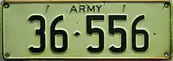 However, new plates issued to the Army are now in this format: nn-nnnn, where the first two digits represent the year the vehicle was registered, e.g. 05-1832.