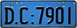 Diplomatic plates are issued to foreign diplomats by the Government of the Australian Capital Territory. They would formerly grant diplomatic immunity to the vehicle and driver from all traffic laws, speed limits, parking infringements and tolls in all reasonable course of duty by a diplomatic officer, in compliance with international treaty, but this is no longer the case.[21] They follow the format of "DC nnnn", "DCnnnnn", "DX nnnn" or "DXnnnnn", where the first two or three numbers are the code for the home country of the diplomat, and have black text on a powder blue background. DC plates are issued to members of the diplomatic corps, whereas DX plates are issued to persons who are attached to diplomatic missions but are not themselves diplomats, e.g. household staff.