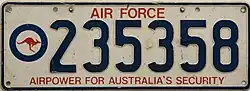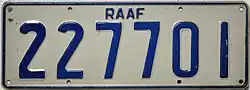 The official car of Chief of the Defence Force carries plates ADF1 and official cars for the three service chiefs carry plates ARMY1, NAVY1 or RAAF1.