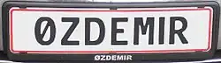These plates cost kr.9,180 (€1,230) per set as of 2021 and must be renewed each eight years at a cost of kr.8,000 (€1,070). The plates can be transferred from one vehicle to another. This is not possible for standard plates. 26 Roman letters, numbers and the Danish letters Æ, Ø and Å can be used in combination. The combination cannot be in the same format as standard plates. The EU strip can be chosen optionally. | ||