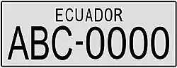 The plates have a XX-0123 format with ECUADOR in black capital letters on top of the plates. The first two letters denote different types of plates based on the user of the vehicle.