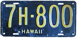 - ^ a b c d e f g Tanner, Eric N. "Hawaii Passenger License Plates". allaboutlicenseplates.com. Retrieved July 5, 2021.