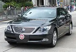 Vehicles of the Chief Executive do not have registration plates. Instead, they have the Emblem of Hong Kong in front and at the rear. During British administration, the vehicle of the Governor bore the St Edward's Crown emblem.[4]