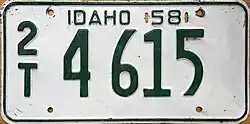 - ^ Tanner, Eric N. "Idaho Passenger License Plates". allaboutlicenseplates.com. Retrieved November 11, 2020.