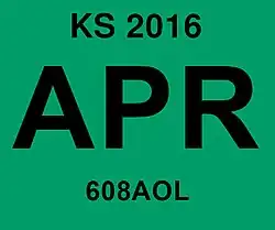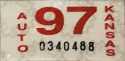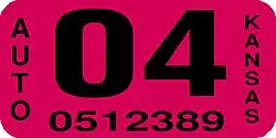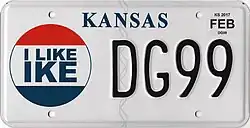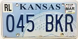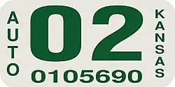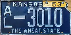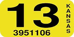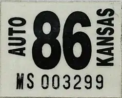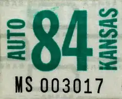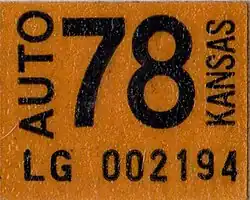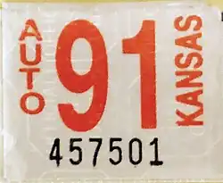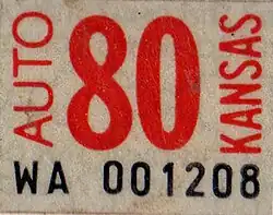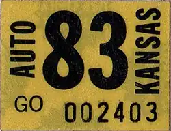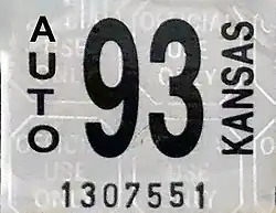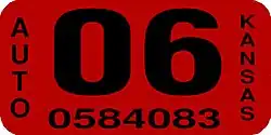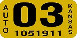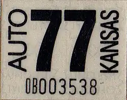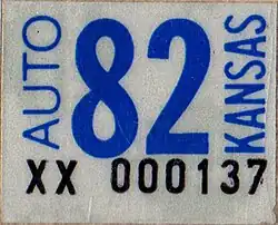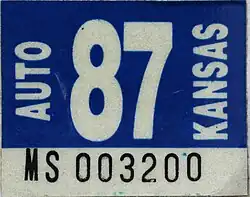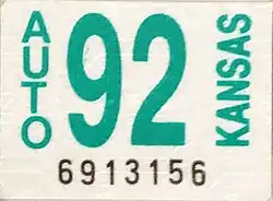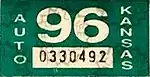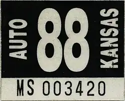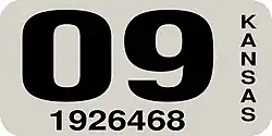 - ^ a b Tanner, Eric N. "Kansas Passenger License Plates". allaboutlicenseplates.com. Retrieved December 4, 2020.