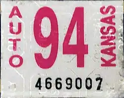 - ^ Obermeyer, Madison (July 19, 2018). "Don't lose that decal: new license plate production to start Aug. 15". The Wichita Eagle. Retrieved December 13, 2018.