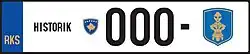 - Old-timer car plates, contain the word "HISTORIK" and the symbol of the Goddess on the Throne.