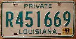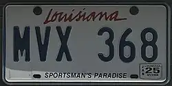 - ^ a b c Tanner, Eric N. "Louisiana Passenger License Plates". allaboutlicenseplates.com. Retrieved November 20, 2020.