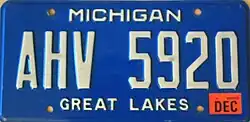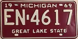 - ^ a b c Tanner, Eric N. "Michigan Passenger License Plates". allaboutlicenseplates.com. Retrieved November 17, 2020.