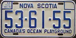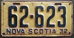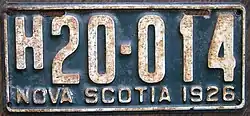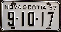 - ^ a b c Tanner, Eric N. "Nova Scotia Passenger License Plates". allaboutlicenseplates.com. Retrieved November 17, 2020.
