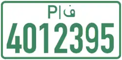 Private vehicles had white plates with green numbers, the numbers have seven digits, the first shows the district (governorate) of the registration: