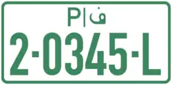 Public transport vehicles such as taxis, shared taxis and buses have green plates with white numbers. Taxi plates always end in "30".