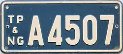 General issue motorcycle registration plates from TP&NG. Issued from 1951 to 1973. | ![]()