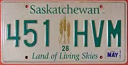 - ^ a b Tanner, Eric N. "Saskatchewan Passenger License Plates". allaboutlicenseplates.com. Archived from the original on January 23, 2022. Retrieved November 17, 2020.