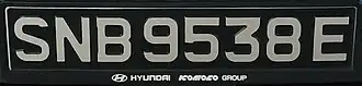 In general, every motor vehicle in Singapore requires a vehicle registration number to be displayed at the front center (in almost all cases or otherwise set by car manufacturer due to bumper constraints) and rear of the vehicle.[1] Two colour schemes are in use: white font on black scheme that is standard on cars and motorcycles from dealerships, or the Euro white/yellow (on front and rear) scheme.[3]