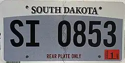 - ^ a b c Tanner, Eric N. "South Dakota Passenger License Plates". allaboutlicenseplates.com. Retrieved November 11, 2020.
