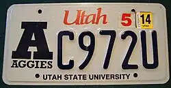 - ^ a b Tanner, Eric N. "Utah Passenger License Plates". allaboutlicenseplates.com. Retrieved November 10, 2020.