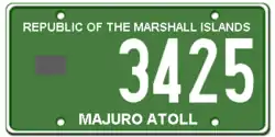 - ^ "License Plates of the Marshall Islands". worldlicenseplates.com. Retrieved 17 March 2018.
