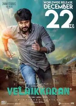 Velaikkaran (transl. Worker) is a 2017 Indian Tamil-language action thriller film[3] written and directed by Mohan Raja. Produced by R. D. Raja under his banner 24AM Studios. The film stars Sivakarthikeyan, Fahadh Faasil, Nayanthara, Sneha and Prakash Raj in lead roles. Mahesh Manjrekar, Sathish, Thambi Ramaiah, RJ Balaji, Vijay Vasanth, Robo Shankar and Rohini play supporting roles. The film's music is composed by Anirudh Ravichander, with cinematography by Ramji. The film is based on a sales executive named Arivazhagan (Sivakarthikeyan) who fights against food adulteration committed by high-class companies.