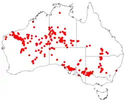 Goodenia connata occurs in all continental Australian mainland states and territories. In New South Wales it is widespread in arid and semi-arid regions in the west of that state.[5] In Victoria it is found in the far north-west on sand dunes.[9] In South Australia in grows on sandy soils usually in mulga or triodia grassland and has a widespread but disjunct distribution.[4] It grows on rocky ranges or hills in the southern half of the Northern Territory[10] and in the Central Ranges, Coolgardie, Great Sandy Desert, Great Victoria Desert, Little Sandy Desert, Murchison and Pilbara bioregions of inland Western Australia.[2]