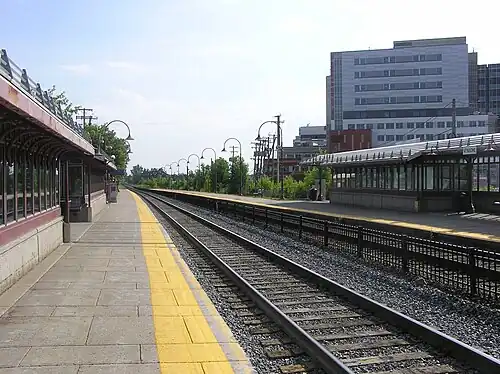 The station originally had two tracks (and two side platforms), but in 2015, a third track running between Montreal West and Downtown Montreal's Lucien-L'Allier station was added for improved service, and platform 2 was rebuilt as a wider island platform so trains running on the new track could call at the station as well.[15]