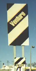Venture's advertising slogan during the 1980s was "Save at Venture, Save With Style". or "SWS".[2] In the 1990s, Venture employed two other slogans; the first, tied to a companywide remodeling initiative aimed at making the stores more like Kohl's, was "See What's New For You!". At the time Venture closed, its slogan was "See What A Little Money Can Buy".
