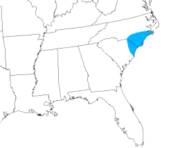 Dionaea muscipula occurs naturally only along the coastal plain of North and South Carolina in the U.S., with all known current sites within 90 km (56 mi) of Wilmington, North Carolina.[9] A 1958 survey of herbaria specimens and old documents found 259 sites where the historical record documented the presence of D. muscipula, within 21 counties in North and South Carolina.[40] As of 2019, it was considered extirpated in North Carolina in the inland counties of Moore, Robeson, and Lenoir, as well as the South Carolina coastal counties of Charleston and Georgetown. Remaining extant populations exist in North Carolina in Beaufort, Craven, Pamlico, Carteret, Jones, Onslow, Duplin, Pender, New Hanover, Brunswick, Columbus, Bladen, Sampson, Cumberland, and Hoke counties, and in South Carolina in Horry county.[9]