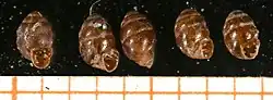 | Five shells of Vertigo antivertigo, scale in mm | |