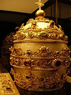 The Protestant writer Andreas Helwig suggested that Vicarius Filii Dei was an expansion of the historical title Vicarius Christi, rather than an official title used by the Popes themselves. His interpretation did not become common until about the time of the French Revolution.[39] Some later Protestant figures asserted that Vicarius Filii Dei was an official title of the Pope, with some saying that this title appeared on the papal tiara and/or a mitre. Some Catholic converts to Protestantism such as Balthasar Hoffman[40] also testified to witnessing the title engraved with 100 diamonds on the 1845 tiara of Gregory XVI.[41]