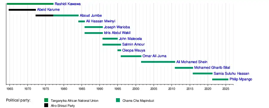26 April 1964 | 13 February 1977 | 12 years, 293 days | TANU (until 1977) |