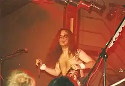 Vicki Vomit (born Jens Hellmann, July 9, 1963, Trusetal) is a German satirical musician and comedian. He lives in Erfurt. He is the cousin of Tamara Danz. He was a member of the German heavy metal Band "Blitzz" , who released just one Album (Do the Blitzz) with Steamhammer/SPV in 1989.