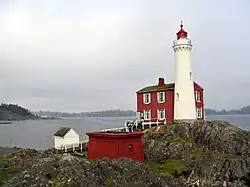 The Fisgard Light and Race Rocks Light were built on islands outside of Esquimalt and Victoria harbours in the years 1859 and 1860. The former light was constructed by Joseph Despard Pemberton as supervising engineer, the latter light was constructed by the crew of HMS Topaze. The two lighthouses were the first built on Canada's west coast and still serve as active aids to navigation.