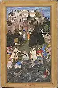 - ^ Description of this picture on the website of the Victoria and Albert Museum to the Akbar-nāma to this picture of La'l; Sen: Paintings from the Akbar Nama: A Visual Cronicle of Mughal India. 1984, p. 151.