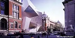 The Victoria and Albert Museum Spiral (or V&A Spiral, or The Spiral) was a proposed extension of the 19th-century London building which houses the Victoria and Albert Museum, the world's largest museum of decorative arts. It was designed by Daniel Libeskind and the designer, artist, and writer Cecil Balmond.[1] The museum chose the design over seven others in competition in 1996, but after much controversy and failing three times to attract the necessary funding, the project was abandoned[2] in 2004.[3]