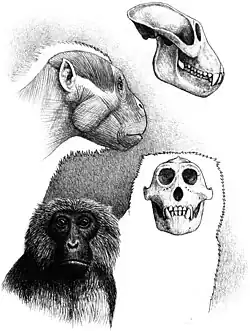 Victoriapithecus macinnesi was a primate from the middle Miocene that lived approximately 17 to 15 million years ago in Northern and Eastern Africa. Through extensive field work on Maboko Island in Lake Victoria, Kenya, over 3,500 specimens have been found, making V. macinnesi one of the best-known fossil primates.[1] It was previously thought that perhaps multiple species of Victoriapithecus were found, however the majority of fossils found indicate there is only one species, V. macinnesi.[1] Victoriapithecus shows similarities to the extant subfamilies Colobinae and Cercopithecinae. However, Victoriapithecus predates the last common ancestor of these two groups and instead is thought to be a sister taxon.[2][3]