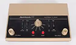 New Zealand was an early adopter of the video game phenomenon, despite its remoteness.[5] Many Atari 2600 titles were assembled under licence by Monaco Distributors in Auckland.[6] New Zealand developed its own Pong-style game console, the Sportronic, in the late 1970s, as a result of import licensing laws.[7][8]