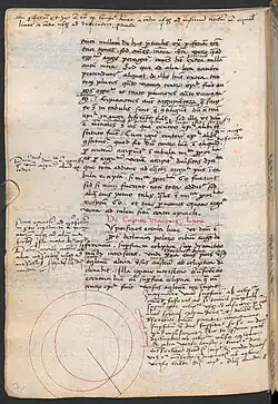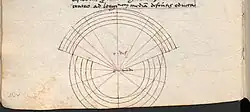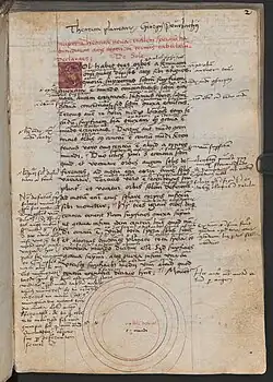 Vienna ÖNB 5203[1] is a fifteenth-century astronomical multiple-text (and multi-graphical), miscellany manuscript conserved at the Austrian National Library (Österreichischen Nationalbibliothek).[2] One of the main features of this codex is that it has been largely copied by the hand of Regiomontanus,[3] a famous German mathematician, astrologer and astronomer of the fifteenth century. Apart from Regiomontanus’ autograph, Vienna ÖNB 5203 contains examples of two other scribal hands, one of which belongs to Georg von Peurbach, who was as well an astronomer, mathematician and instrument maker of Austrian origin. The manuscript also contains a number of Peurbach's works, including his most famous one – Theoricae Novae Planetarum, a re-elaboration of Ptolemaic astronomy theories in a more comprehensive way. Other treatises in Vienna ÖNB 5203 touch upon a great variety of subjects, including astronomy, astrology, music, mathematics and physics.[4]
